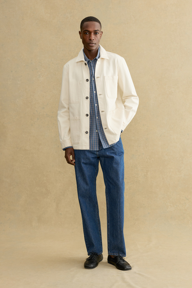 A 4-pocket overshirt featuring three exterior patch pockets and one interior pocket. Constructed from 100% cotton denim in a blue wash, with twin-needle stitching for added durability and a refined look. - Regular fit - 100% Cotton - One inside pocket that is visible and stitched through - Two patch pockets - Chest pocket with pen slot - Five buttons - Straight hem - Made in Portugal