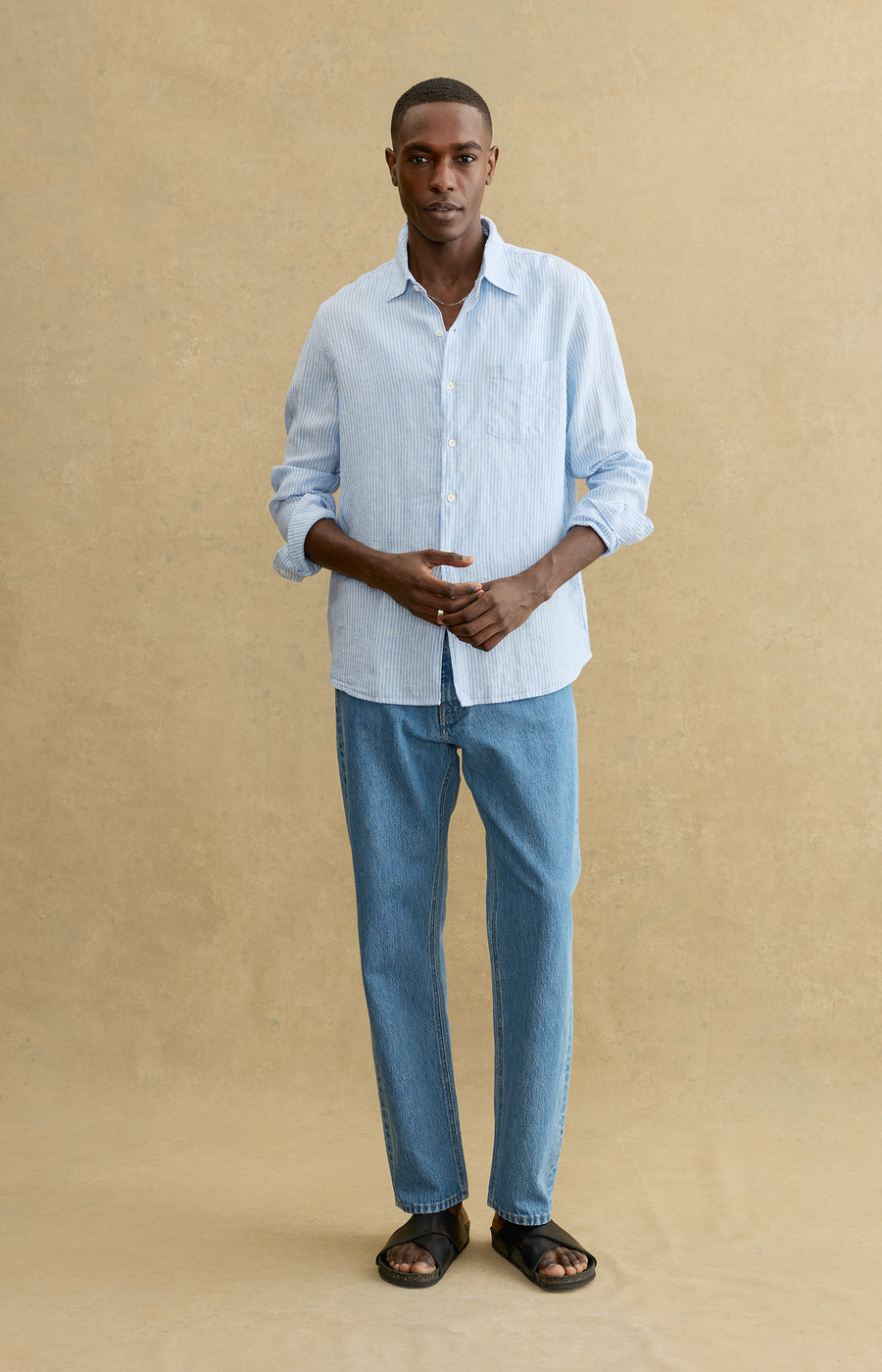 Crafted from 100% linen, a naturally breathable fabric valued for its lightweight feel and effortless texture. Designed as a versatile wardrobe staple, it offers relaxed comfort while maintaining a refined appearance, making it easy to dress up or down.