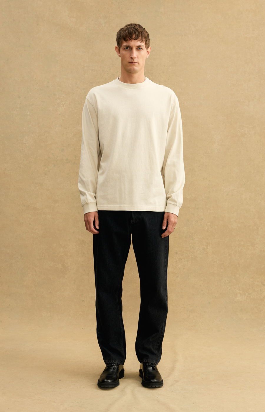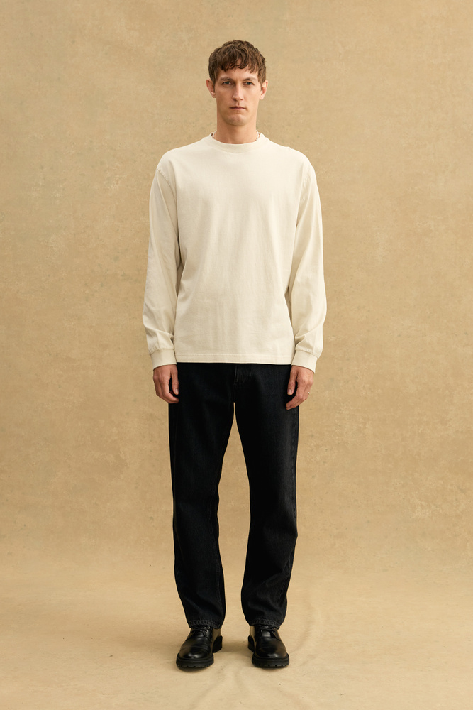 The Tron Long Sleeve T-Shirt offers a modern and refined take on a layering essential, expertly crafted from 100% organic cotton. Designed with a relaxed fit and a clean silhouette, it features a classic crewneck and ribbed detailing at the neckline and sleeve ends. - Relaxed fit - 100% Organic Cotton - Crewneck with long sleeves - Ribbed crewneck and hemline at the sleeves