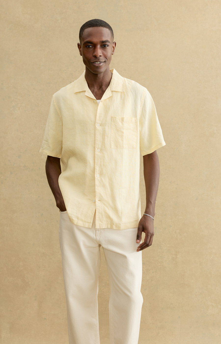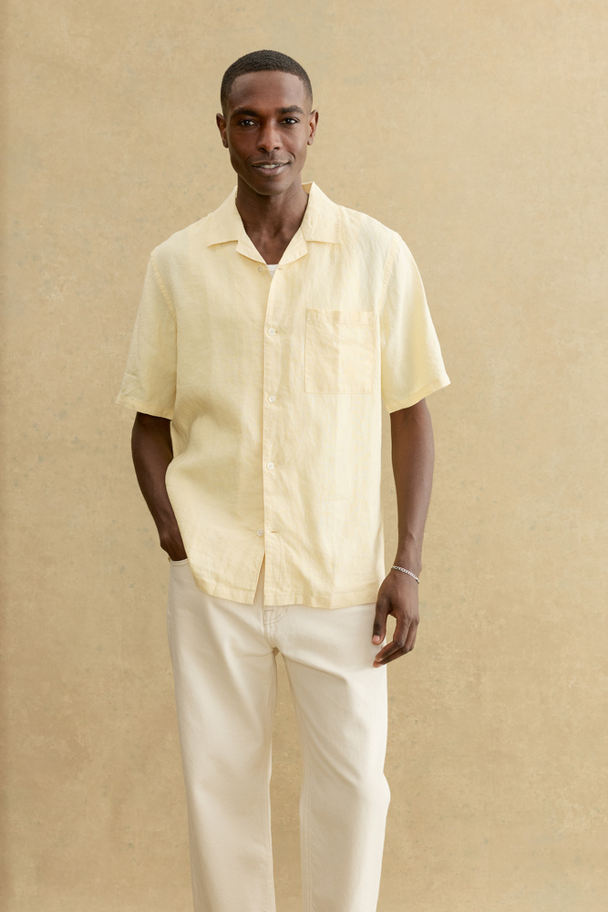 The Yamu Linen Shirt is a lightweight and breathable essential, perfectly suited for warmer days. Crafted from 100% linen, it features a relaxed yet refined camp collar without a collar band for a clean, laid-back aesthetic. – Regular fit – 100% linen – Camp collar without collar band – Mother-of-pearl buttons – Made in China