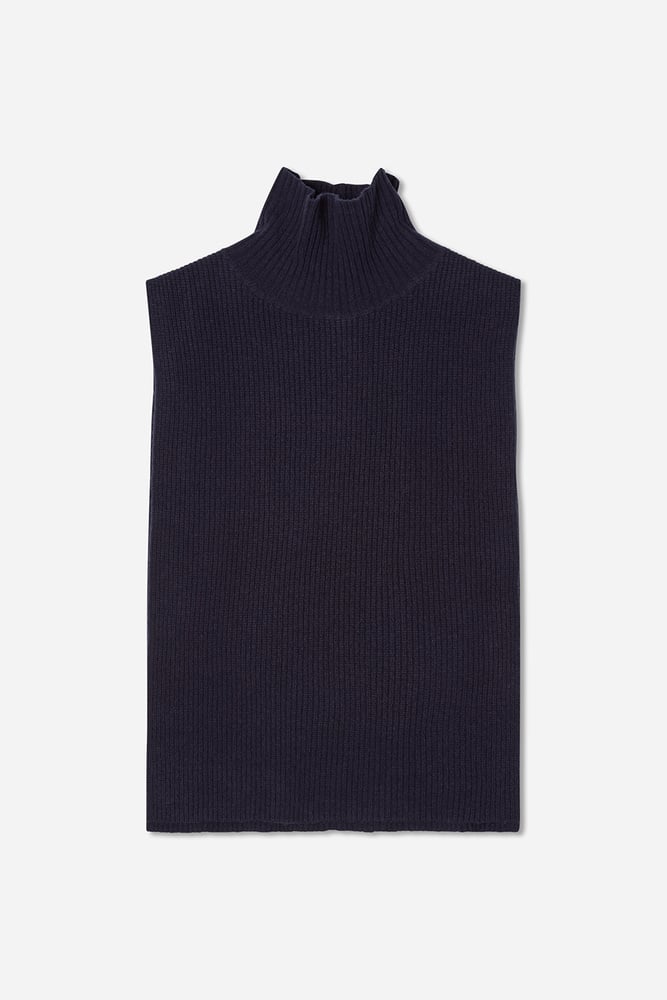 - Knitted lambswool bib with a roll-neck