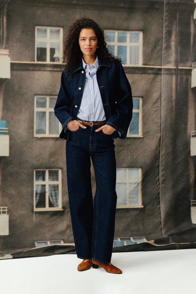 A classic workwear jacket featuring extra wide sleeves for a modern and contemporary look. - Relaxed fit - 100% organic cotton - Wide sleeves - One inside pocket, and two patch pockets