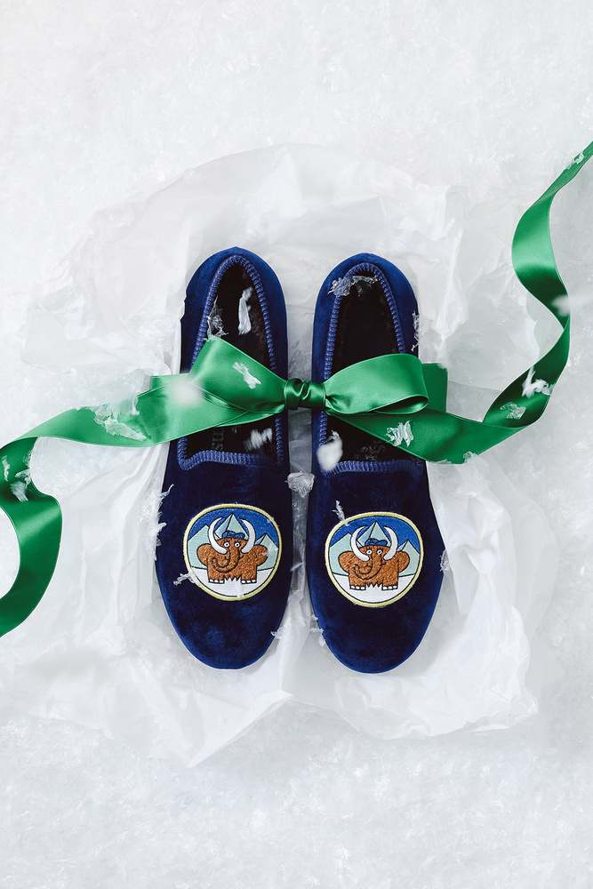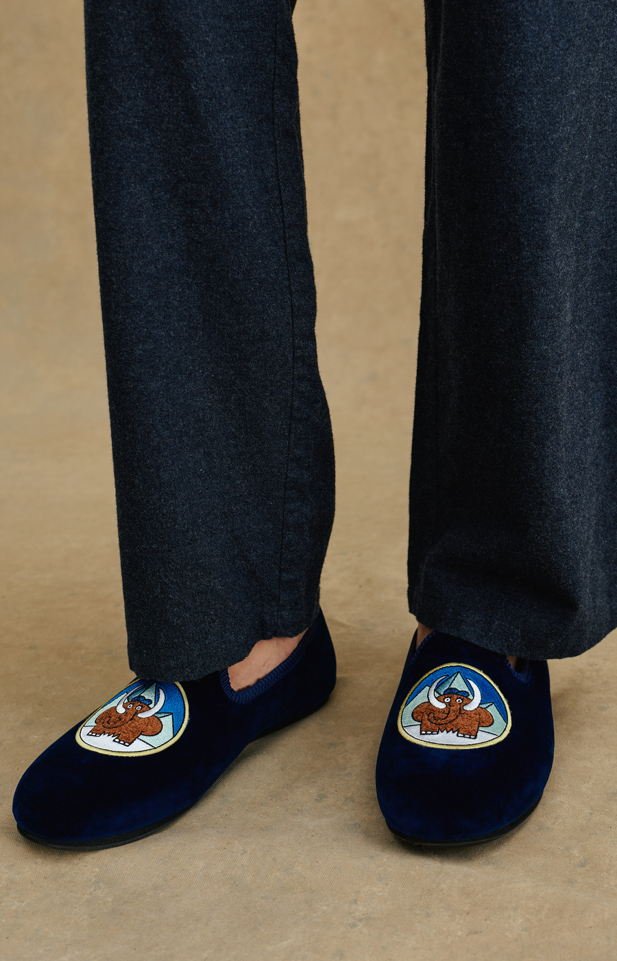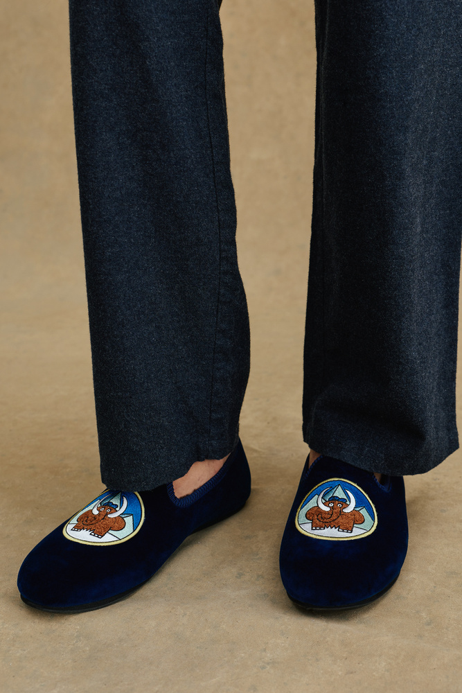 Slip into something a mammoth would approve of — velvet comfort with prehistoric charm. Finished with an embroidered patch by Owe Gustafson. In collaboration with Hums.