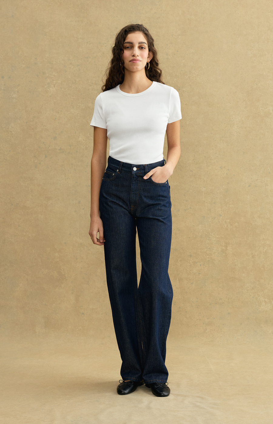 The Lou Denim Trousers offer a timeless, straight-fit silhouette crafted from 100% cotton for a classic, structured feel. Designed with a flattering high waist, these trousers feature traditional 5-pocket styling that blends versatility with a clean, modern aesthetic. A durable and essential staple, they provide a polished look that transitions effortlessly between seasons.