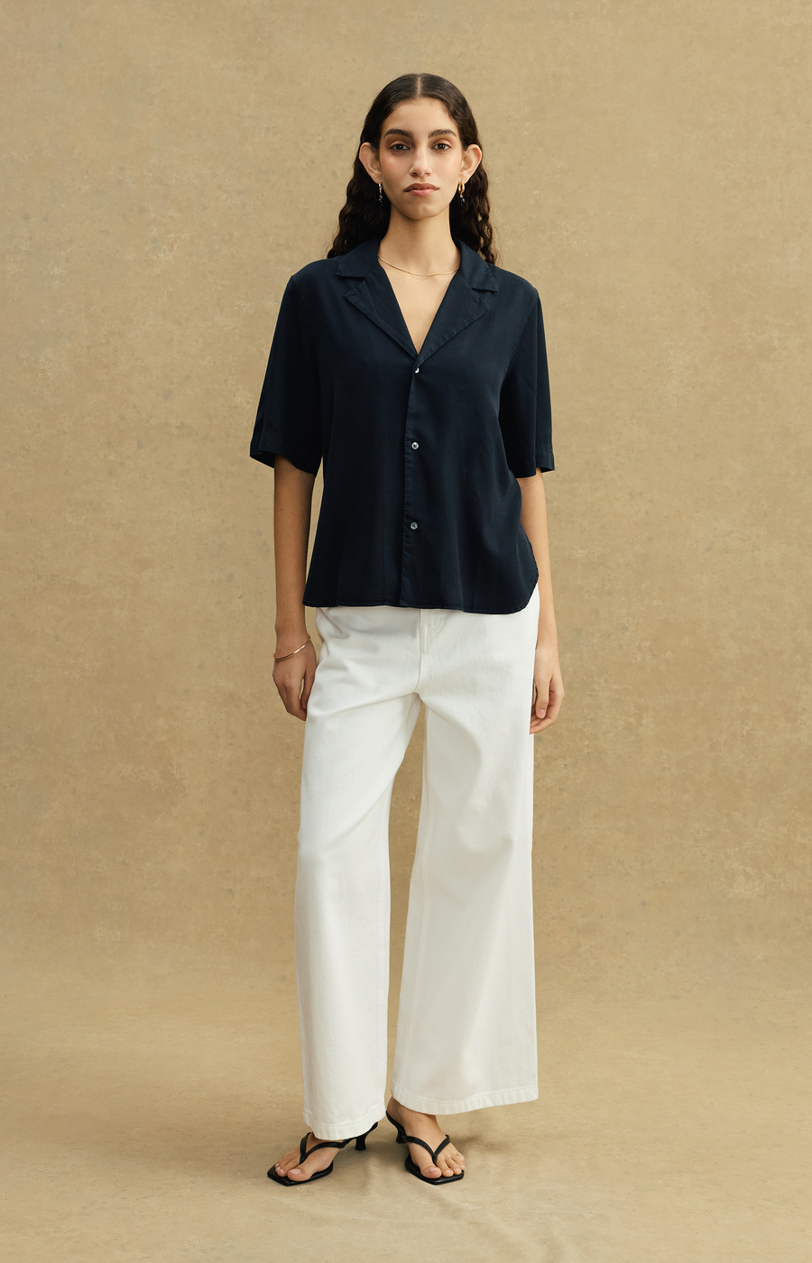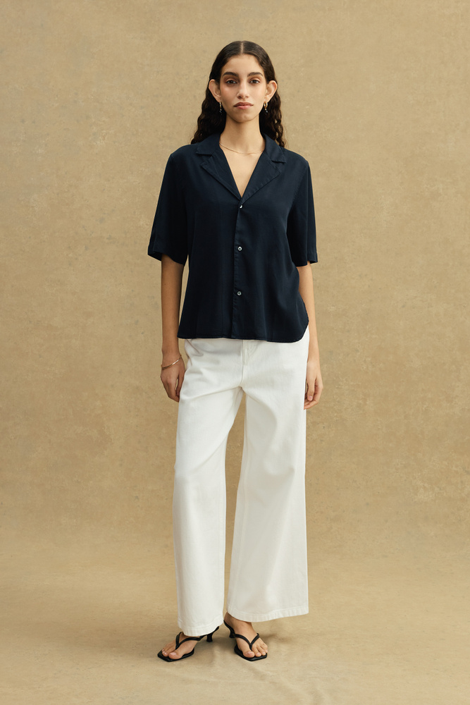 Undo all buttons and wash at 30°C. Stretch the collar gently and dry on the hanger, do not tumble dry. Cool iron.