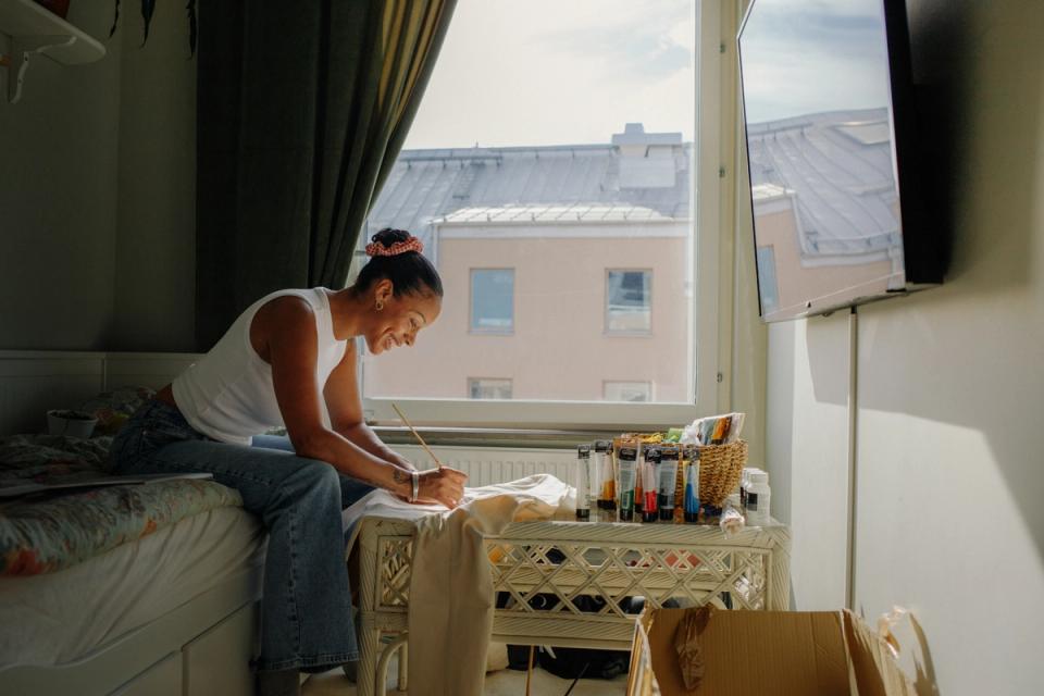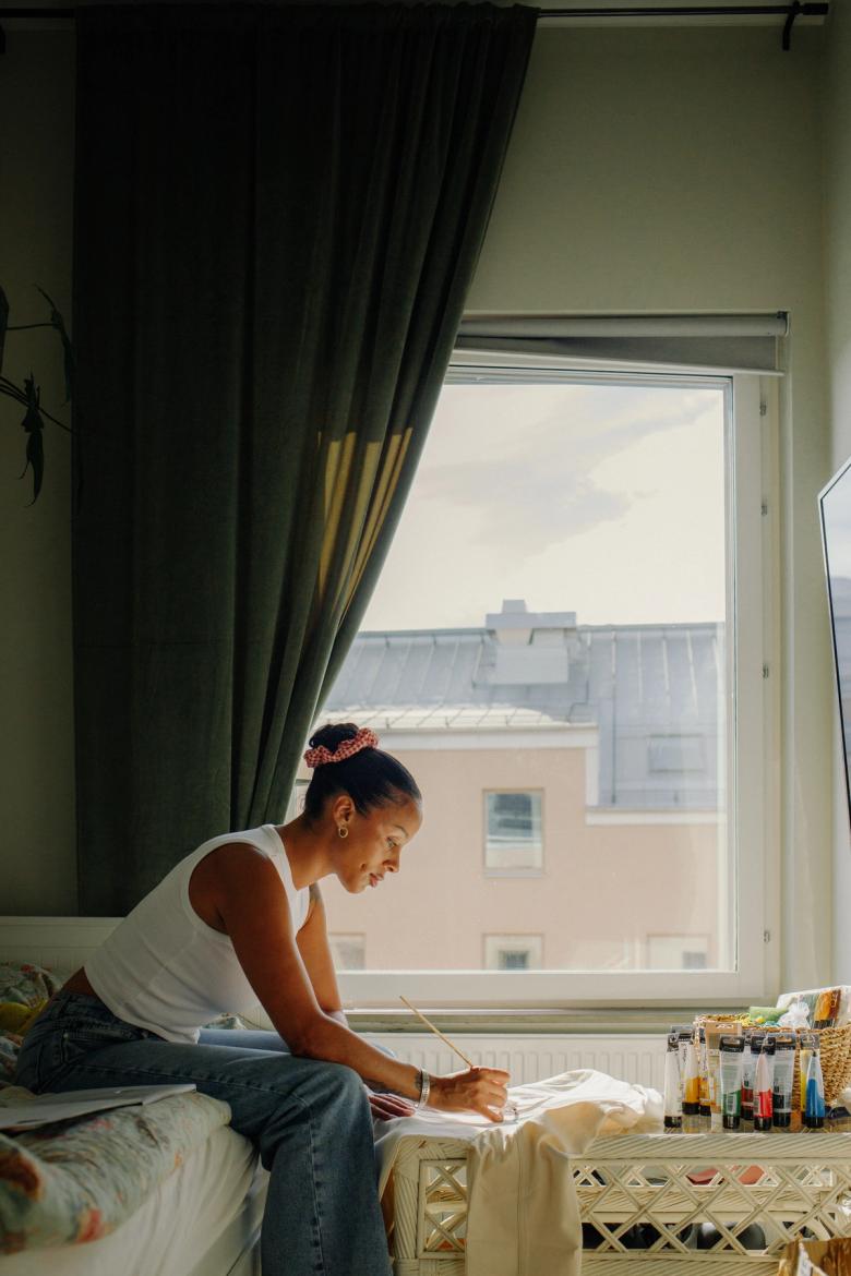 Rugiyatou Jallow paints on overshirts during Stockholm Art Week 2026