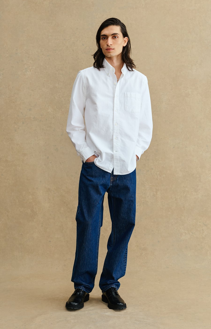 A timeless essential. Made from 100% cotton in a regular fit, featuring a button-down collar, back box pleat, and a rounded hemline.