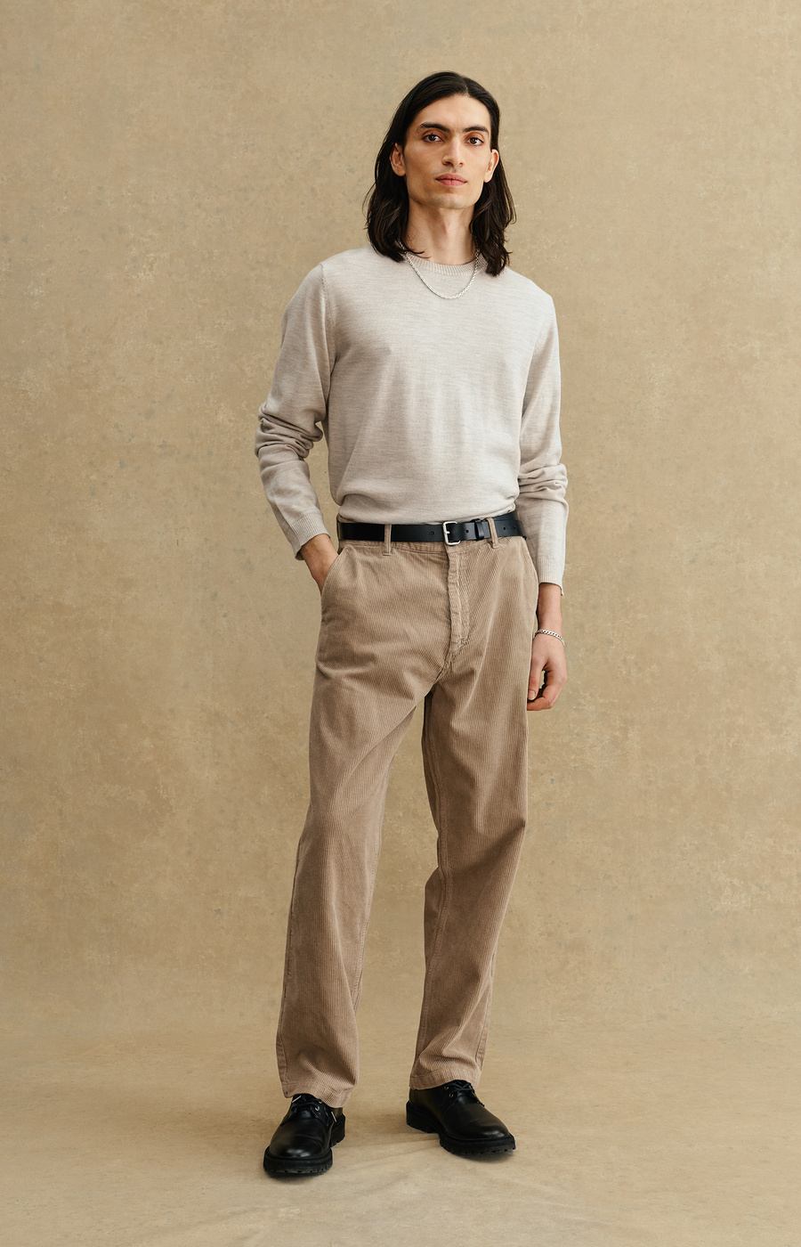 Our refined Merino crewneck sweater. Crafted in a 12-gauge knit. Perfect for wearing layered or next-to-skin - summer or winter. For animal welfare all yarn used in A Day’s March merino program originates from non-mulesed merino sheep.