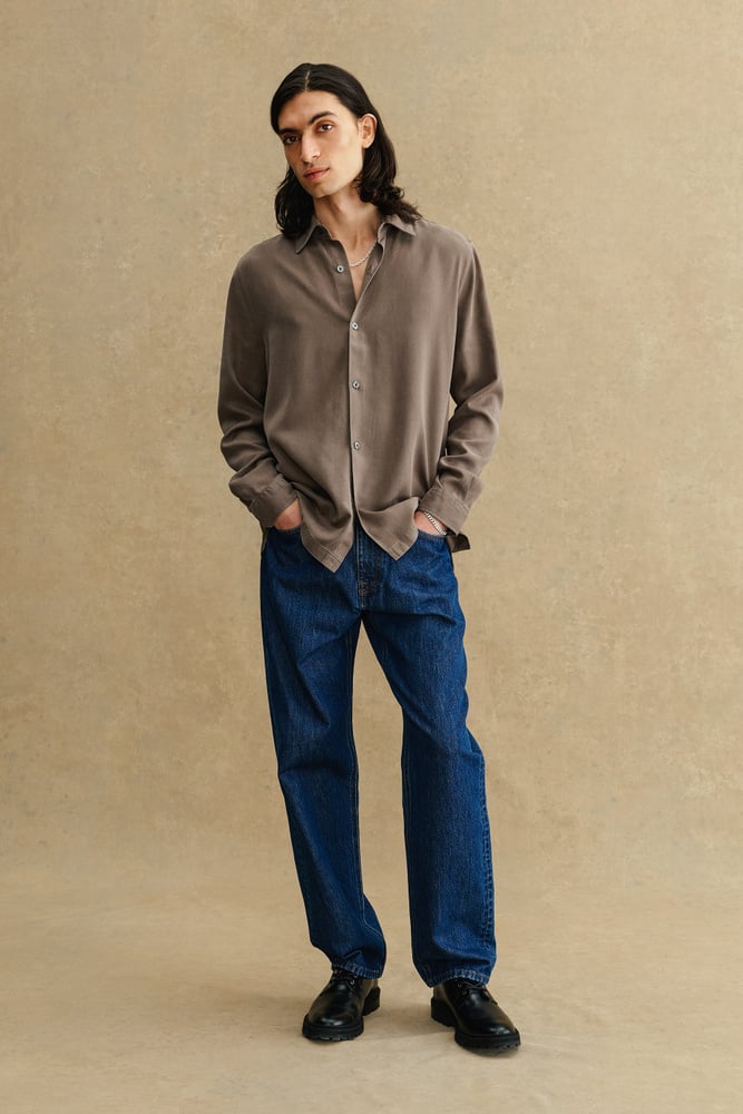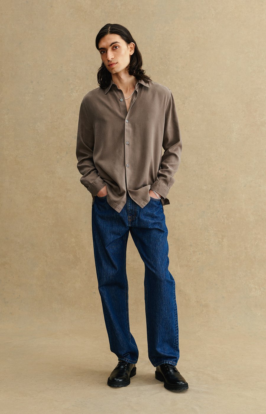 Heavy TENCEL™ Lyocell shirt designed in a straight cut. This shirt is perfect to layer over a t-shirt for a relaxed look - but works just as well as a regular shirt next to the skin. Features mother-of-pearl buttons and a small slit.