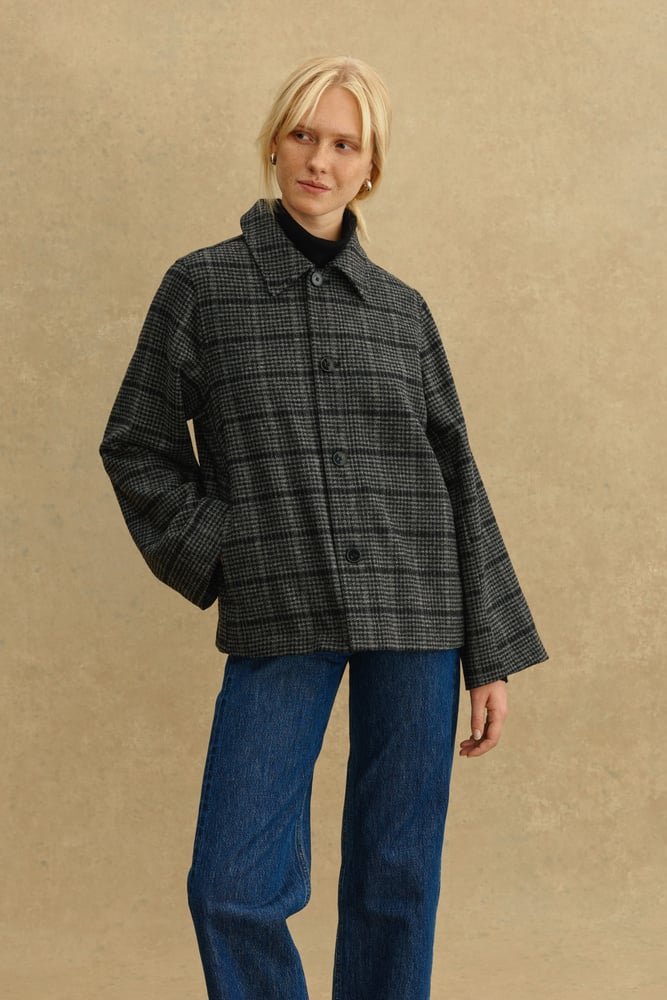 The Houndstooth color is made from 100% virgin wool and is slightly thinner than the other colors. The remaining colors are made from a blend of 80% wool and 20% polyester.