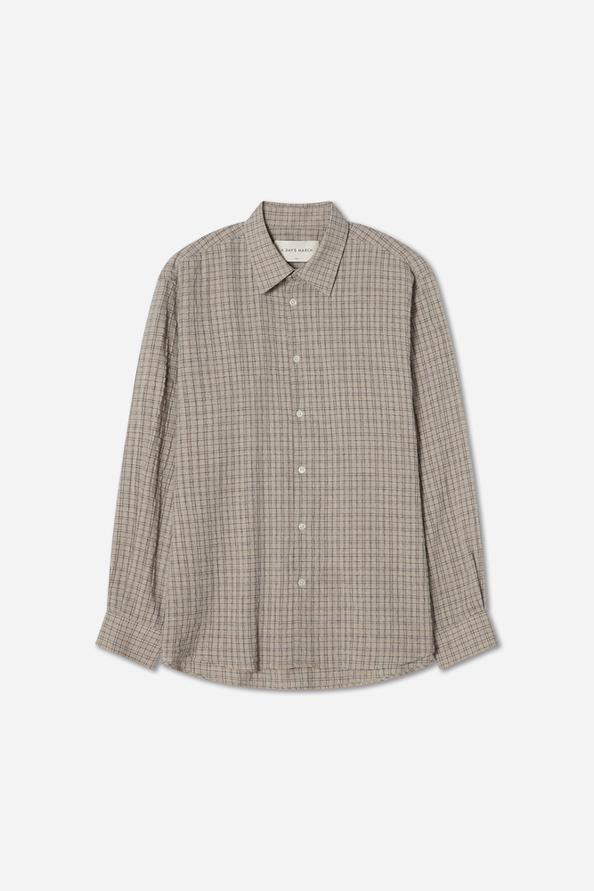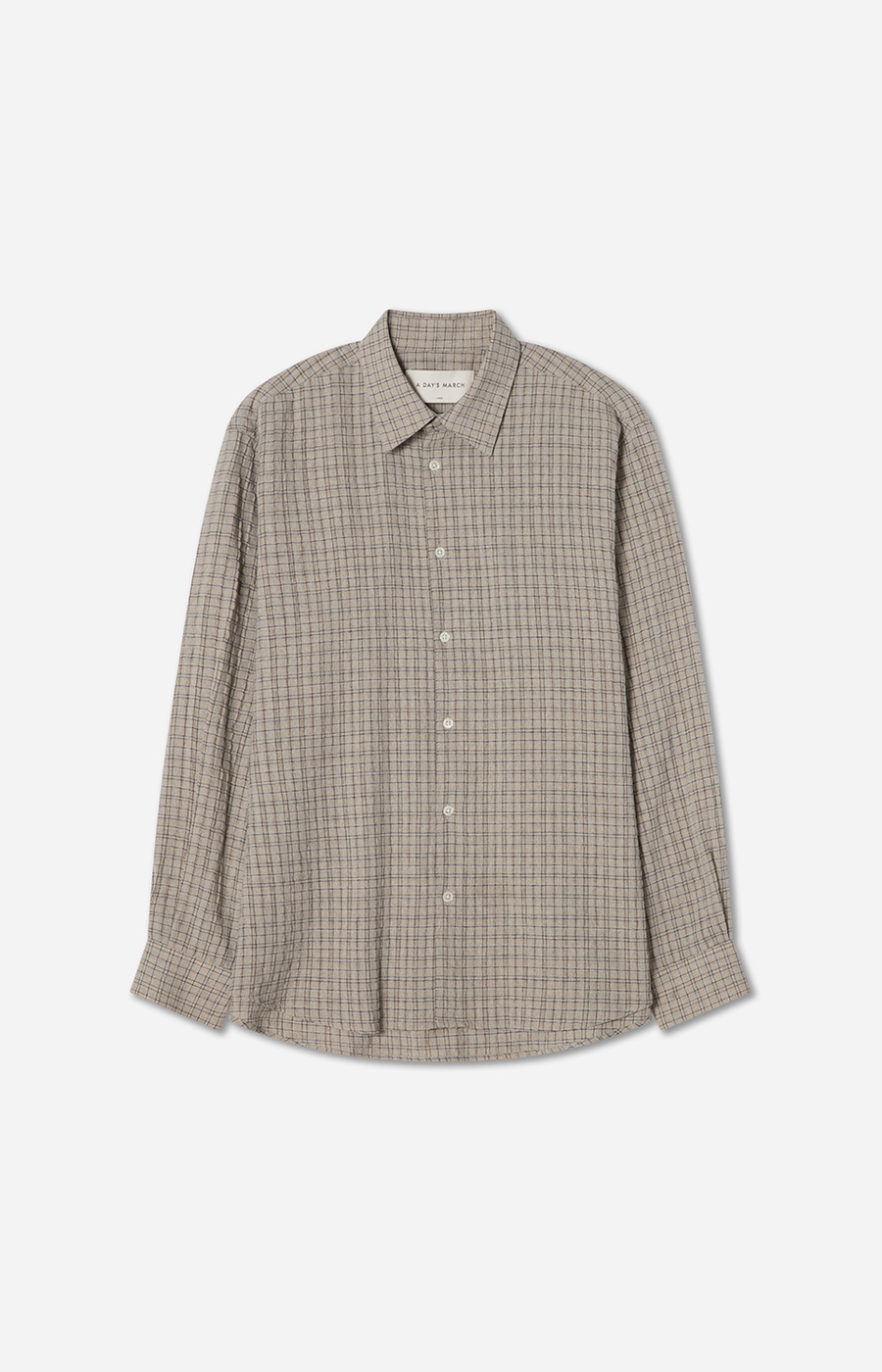 A relaxed-fit shirt in a cotton-blend seersucker weave, finished with mother-of-pearl buttons.