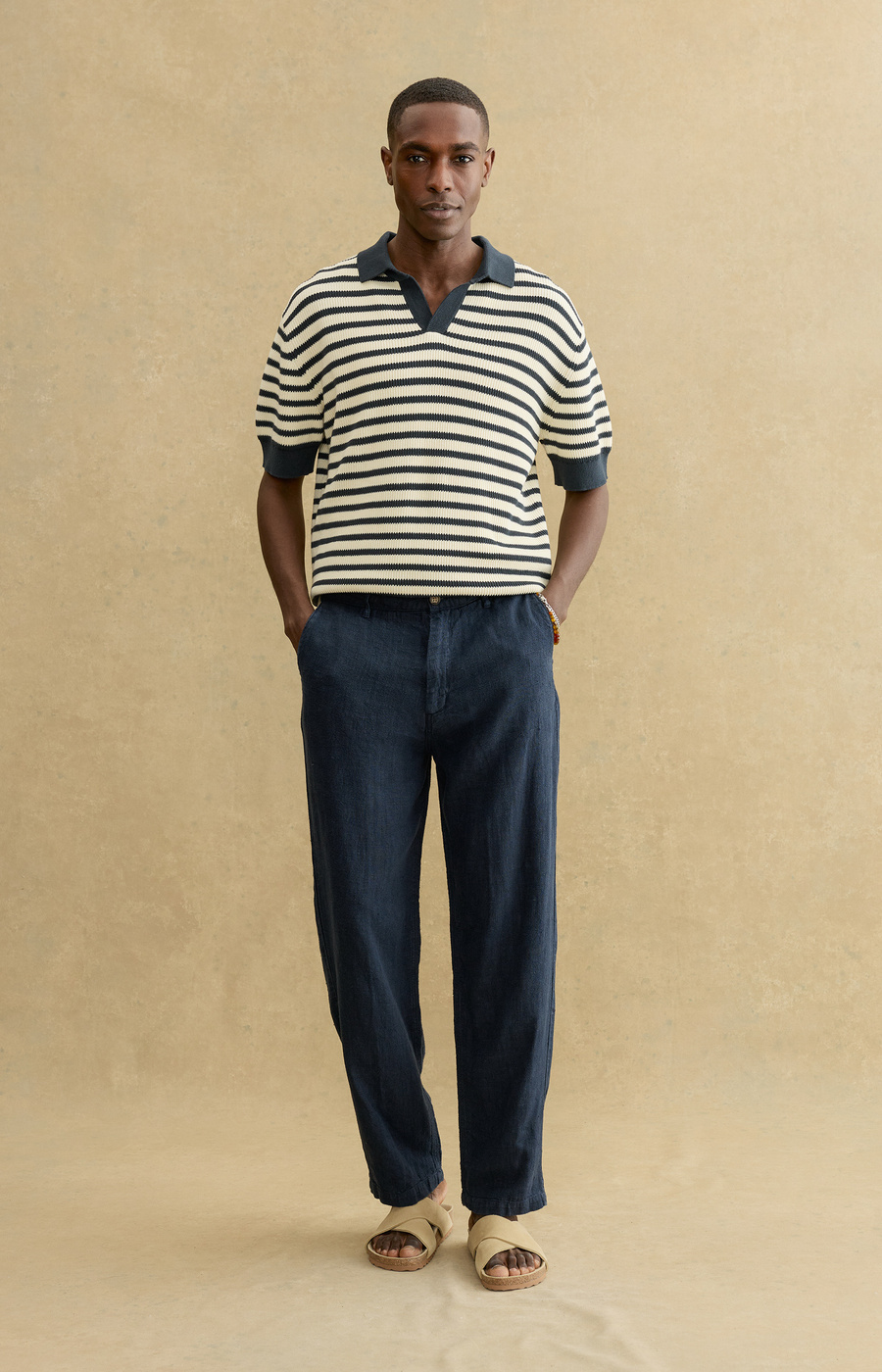 Relaxed yet refined, these slightly wider-leg trousers are crafted from 100% breathable linen. Designed for effortless comfort, they feature slanted side pockets, buttoned welt back pockets, and a classic button-and-zip fly—ideal for warm-weather dressing.