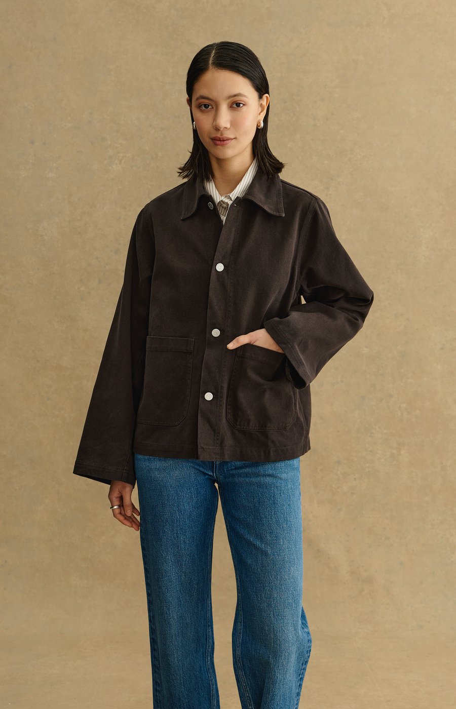 A classic workwear jacket featuring extra-wide sleeves for a modern and contemporary look.